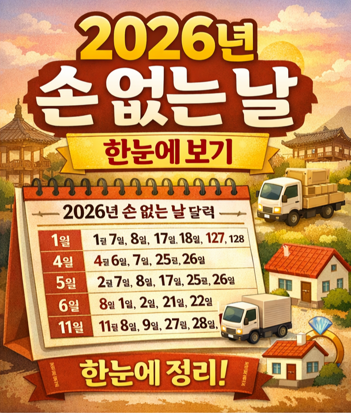 - 2026년 손 없는 날은 연중 여러 차례 존재