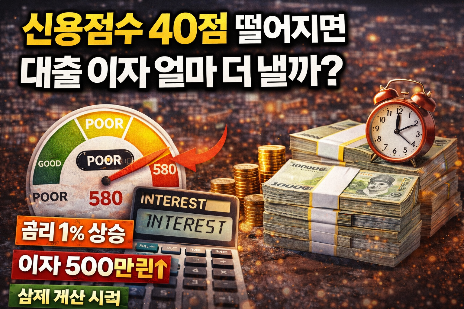 ✔ 신용점수 40점 하락 → 금리 0.5~2% 상승 가능