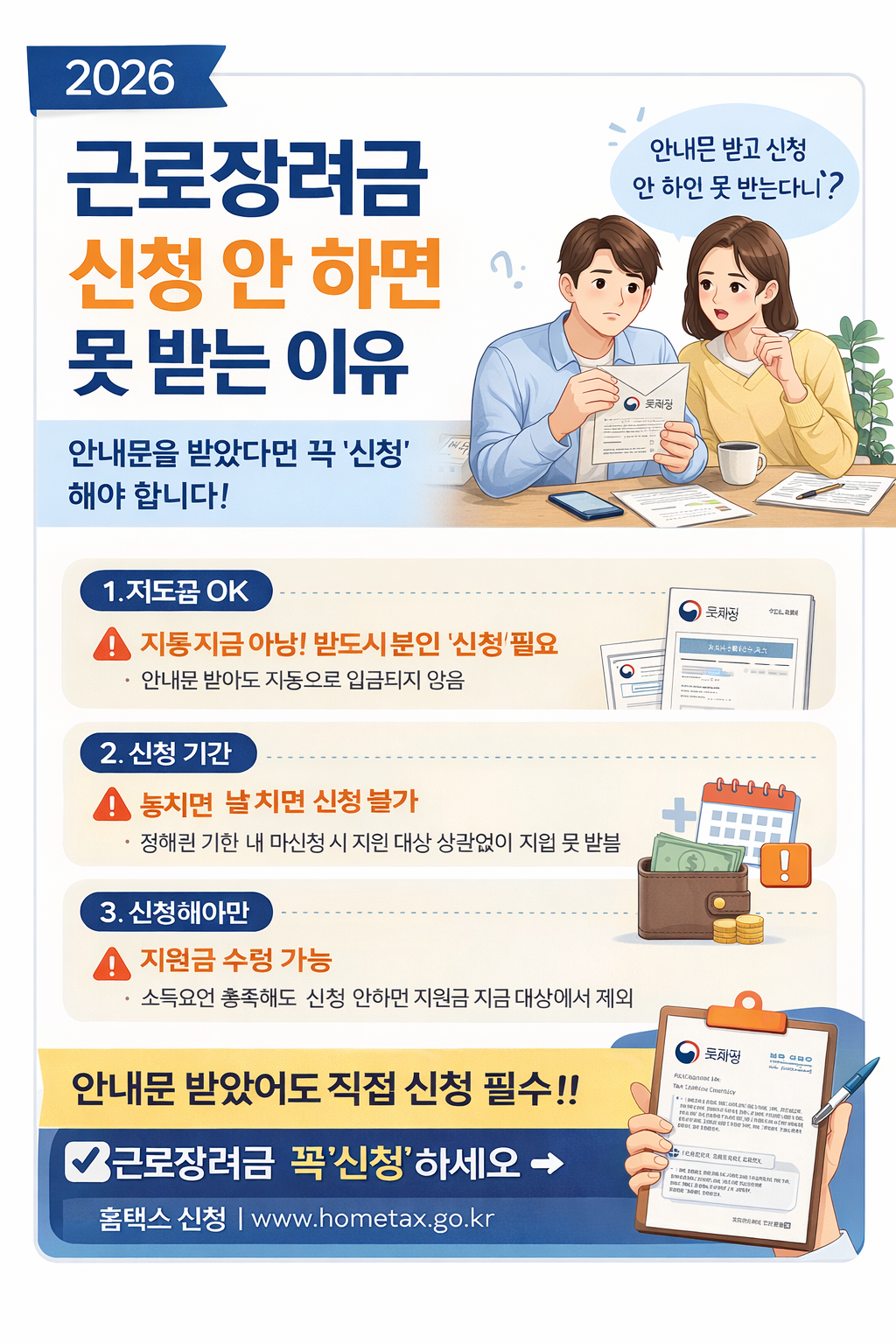 2026년 새해, 근로자분들이 가장 기다리시는 소식 중 하나가 바로 '근로장려금'이죠. 특히 지금(1월 말)은 하반기 분 신청(3월)을 앞두고 안내문 수령 여부에 대한 관심이 폭발하는 시기입니다.