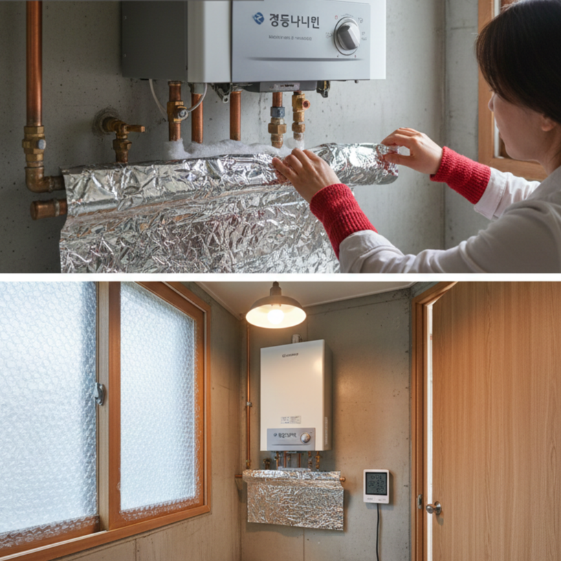 - 방법: 노출된 모든 배관을 은박 단열재로 한 번 더 감싸고, 이음새는 단열 테이프로 밀봉합니다.
